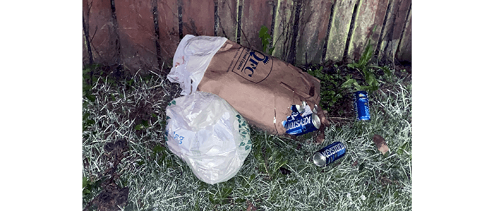 Perhaps if they finished the energy drinks, they would have the energy to carry their trash to the trash can.
