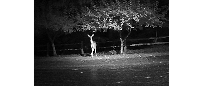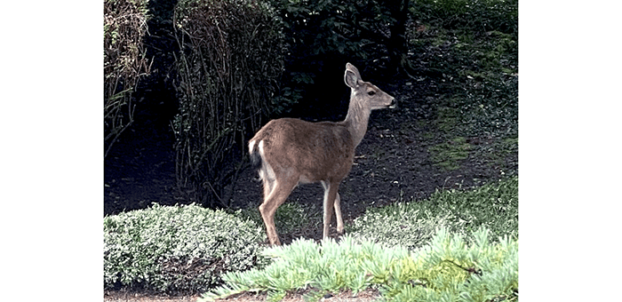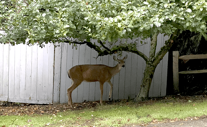 It was just standing there like a deer in the headlights and this time, it didn’t run away. Later in the day after our walk, it evidently decided that our yard was a safe place.