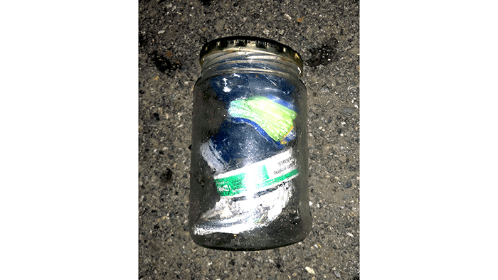It was filled with chewing tobacco cans and other random trash. Raves for taking responsibility for their litter and putting in a jar. Rants for tossing the jar for us to pick up.