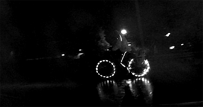 We’ve seen her off and on for a few years now, and when it’s dark, she has the bike lit up even more than we are. Last year we asked her where she was going, and her reply was “swimming.”