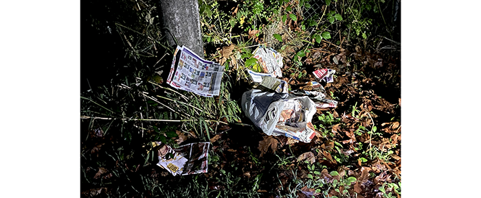 Most of it was the typical Wednesday Safeway, Fred Meyer, etc. weekly flyers with some junk mail, nothing to report to the U.S. Postal Service. Obviously, the thieves robbed several mailboxes and quickly got rid of the stuff they weren’t interested in. They thoughtfully put the bulk of it in a plastic shopping bag. They unthoughtfully tossed more out a few more places up the hill.