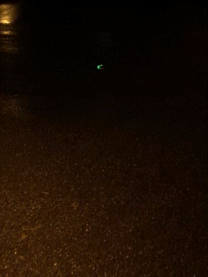 As we were arriving home, we spotted a flashing light in the center of the street.