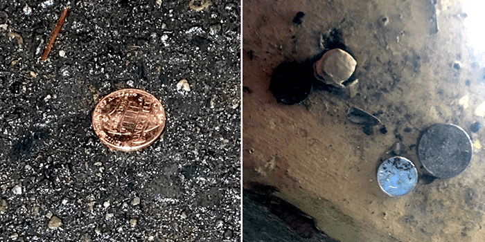 In the gutter on Juanita-Woodinville Way, we found a shiny penny and at Janet’s favorite drive-thru, a quarter, a dime, and a nickel. However, as she was mining the coins, she lost one of her mining tools down the crevasse. We found the caulking tool a while back and Janet has been using it for her mining. She is now planning a retrieval operation for Monday.