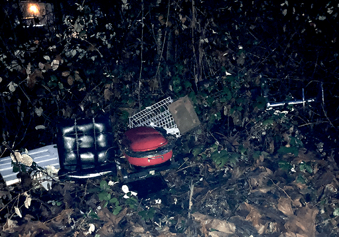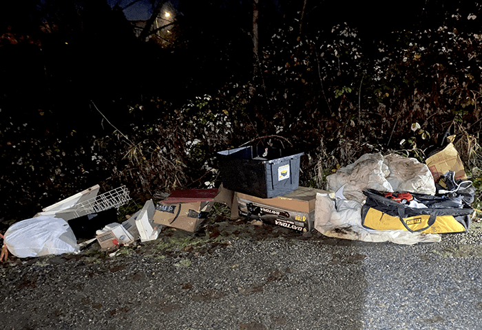 It was left by the same individual who dumped the first mess. We will see if Woodinville has a way to contact someone to pick this up, but the Woodinville part of Woodinville Drive is generally a mess anyway.