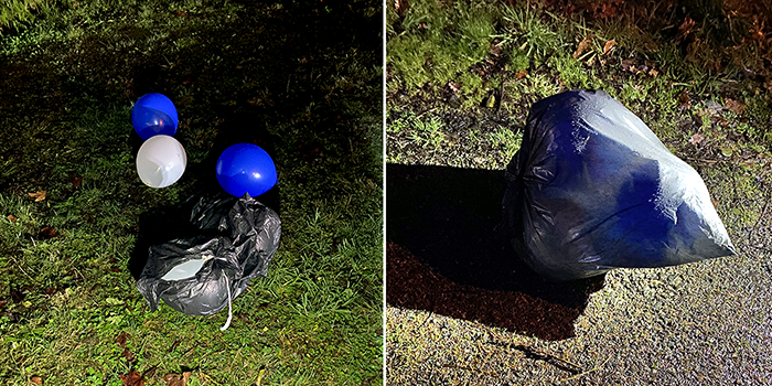 It turned out to have three balloons in it and we found another three balloons on the side of the road. Then on Norway Hill, we found another bag with another six balloons in it. The balloons were blue and white which are the colors of Bothell High School. “Okay, Jake, your job is to get balloons for the big dance, don’t screw it up again!” “Don’t worry, I got this.”
