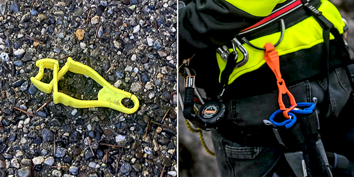 They looked like they could be interesting, and we tracked them down using Google Lens. They are “Ergodyne Squids 3400 Glove Clip Holder.“ Although they are called glove holders, they can hold multiple items, like for instance our garbage and recycle bags! We can get very excited about these.