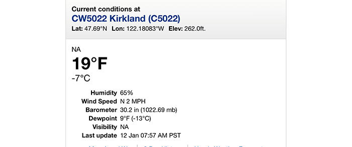 The forecast for tomorrow is even colder, 11°F (-11.7°C).