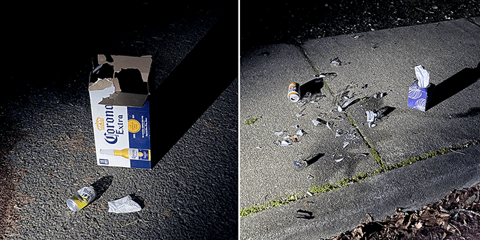 We cleaned it up as best we could and put it across the street so we could pick it up later. Why do people break the bottles? Folks walk their dogs along here.