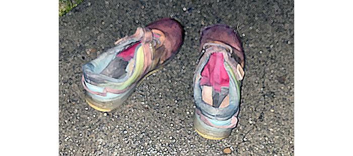 We picked up a rare pair of lost shoes on the freeway overpass.