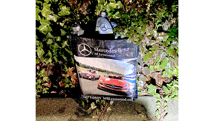 So, who can afford to buy motor oil from a Mercedes-Benz dealer, but must go to the park-and-ride to change it? The bottles were full of the used oil, so we left it for the crew that gets paid to remove it.