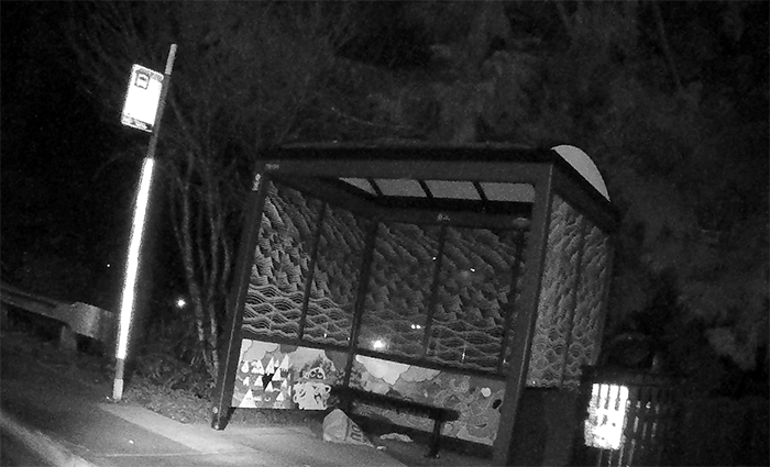 At the bus stop on Juanita-Woodinville Way, someone left a Goodwill shopping bag and some other trash.