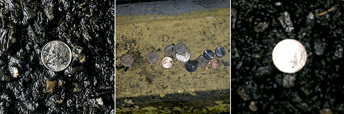 She got the dime, but when she tried for the quarter, it slipped away. She was in a foul mood the rest of the day. Did we mention that Chuck found none?