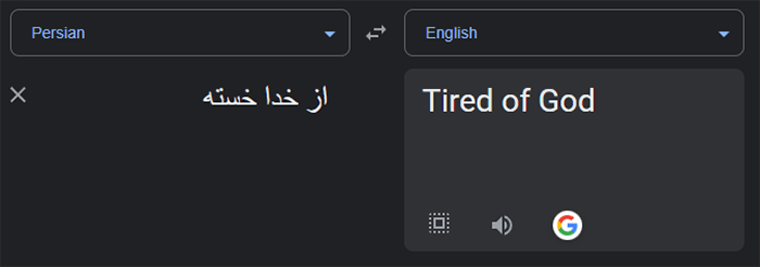 We don’t think they would make a CD with that title. We finally got smart and looked the album up online and found the title in Persian. Then we fed that into the Google translator: