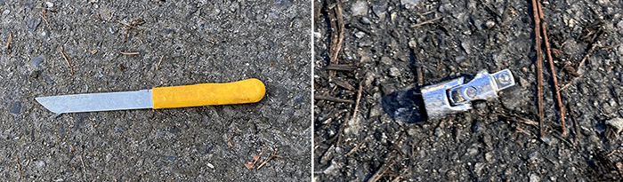 A utility knife and a universal socket extension. The knife is labelled Fixwel Rostfrei Germany. Rostfrei means stainless in German. There is a company Fixwell with two L’s that seems to be legitimate, so this knife may be a knock-off. It still counts as a tool, though.