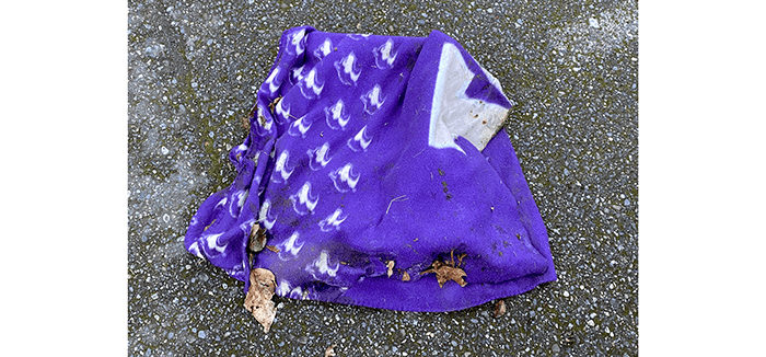 It was stuck together with some substance, so we decided to bag and dispose of it. Normally we would wash it and put it on our Goodwill pile. However, we have seen some pretty disgusting “stuff” on towels and blankets and didn’t want to deal with it.