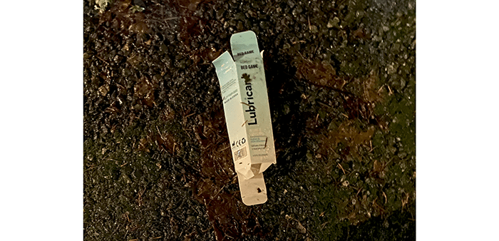 Personal lubricant by Bed Game. At least we didn’t find any used condoms.