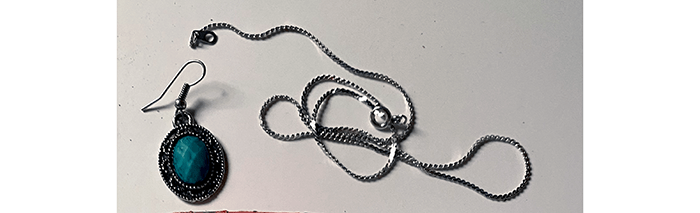 A silver chain and a single earring. It’s too bad we didn’t find a pair. We know pirates wear single earrings, but we don’t think we want to hang around with those that would wear this one.