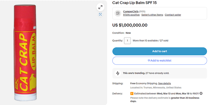 What caught our eye was it appears to be Cat Crap branded lens cleaner. Yet another company that needs a new marketing department. They also make a lip balm. We don’t think they would sell many.