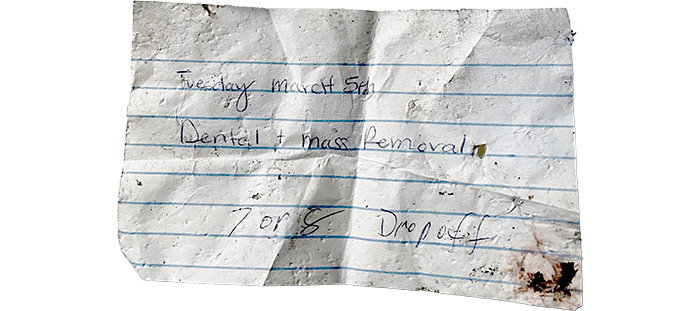 That was the only thing we found of interest, so we checked out Chuck’s vest pocket.