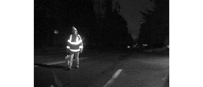 Chuck looked down the road and saw a white utility van accelerating down Juanita-Woodinville Way with one of the rear doors flapping open. Chuck tried to use his flashlight to attract the driver’s attention, but to no avail.