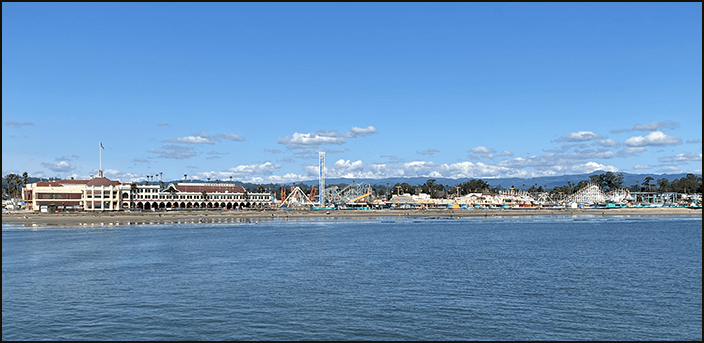 This is a shot of the Santa Cruz B0ardwalk from the wharf.