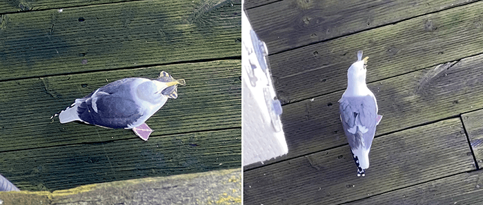 From what we see, it looks to be a Starry Flounder. The gull stood there floundering for several minutes but was eventually able to ingest the fish.