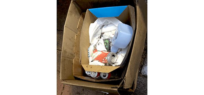 It was ordinary household trash including a few empty beer cans. However, there was also an empty pill bottle.
