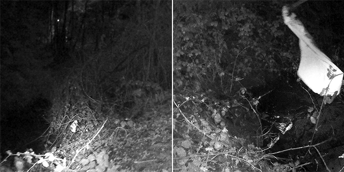 Down in the ditch on Juanita-Woodinville Way, a shirt had been hanging on a limb and Janet decided it was time to send Chuck down to fetch it.
