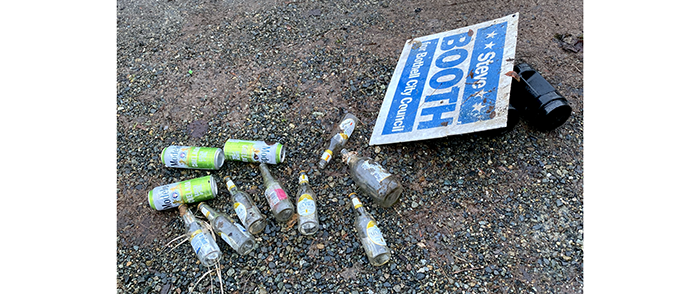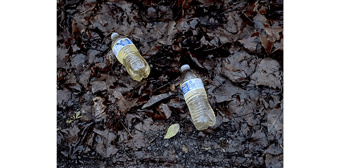 At this time of year, we can see a lot of the trash that has been tossed into the berry bushes.