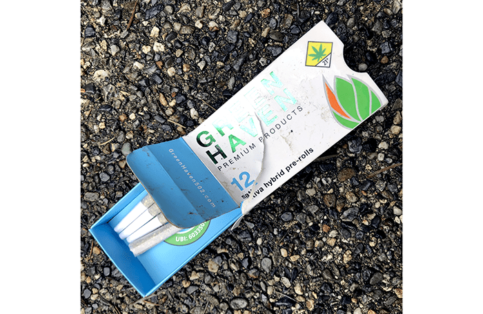 At the park-and-ride: “Hey, Zeke, gimme another joint.” “Sorry, Jake, they’re gone.” “Wow, I didn’t think we smoked that many.” “Yeah, Jake, the box was empty, I checked it before I tossed it.”