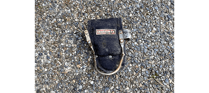 Technically it is a Craftsman hammer holder that fits on a belt. They don’t make it anymore and it’s been run over, but we are still counting it as a tool.