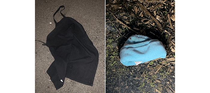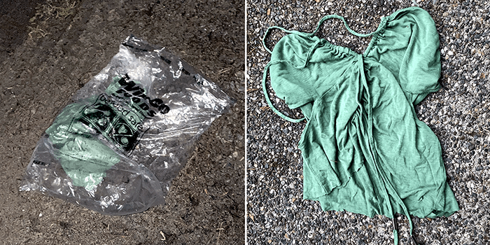On the side of the street, we found what looked to be a tee shirt in a plastic bag.