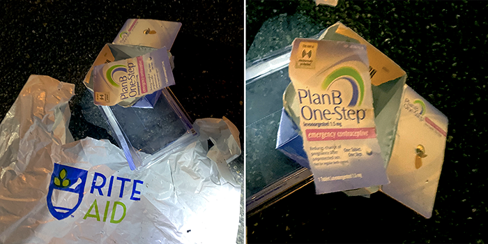 The only thing in it was an empty Plan B One-Step morning-after contraception package.