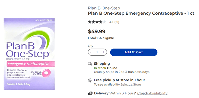 Fifty bucks for one pill. Condoms are much cheaper. Since it needs to be taken within seventy-two hours of the act, having one shipped is out of the question.