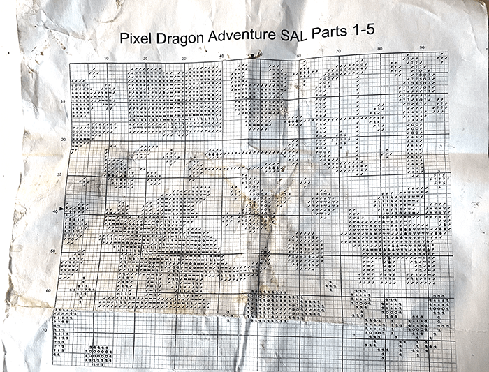 We can see a couple of dragons in there, but the small symbols didn’t appear to define any strategy. There was a URL for FlossyFoxShop, an Etsy site that sells cross-stitch patterns. Glad we didn’t try to solve the game. we could have gotten all our wires crossed (stitched).
