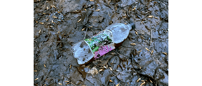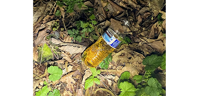 The urine bottles we find are normally water bottles. This is a tea bottle. It’s a bad idea to leave urine in a bottle labelled tea.