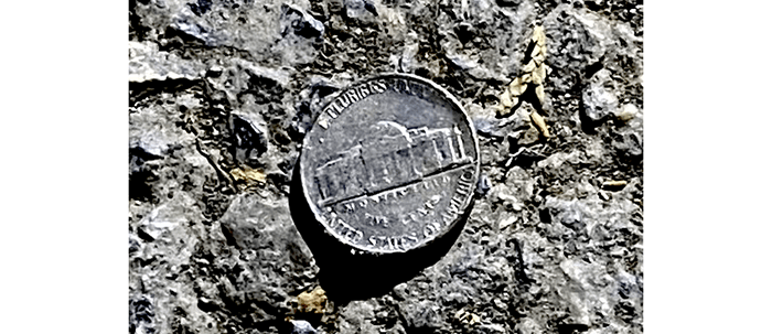 This morning was cool in the low forties with a slight mist. At the midpoint of our walking week, we again found no money. Come on, folks, get out there and spread some change around.