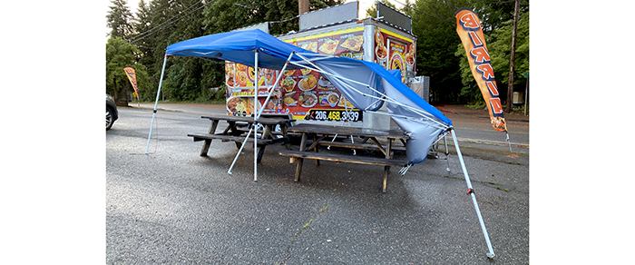 As we predicted, the canopies placed by the new food truck would have issues with the wind. The last big wind we had required duct tape to repair.