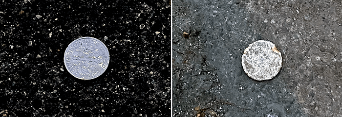 The first one was nestled in a crevasse in the pavement and the second was flat on the pavement. Obviously, it is better safe than sorry.