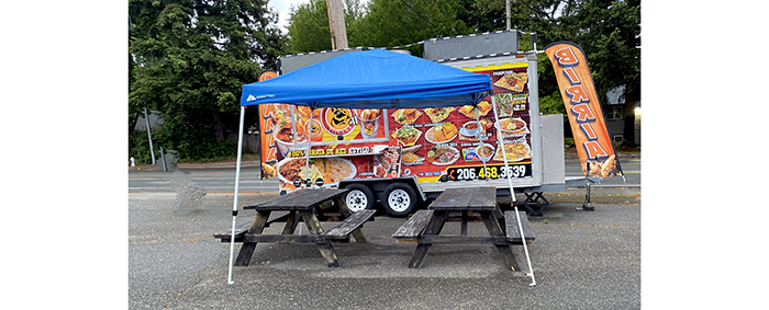 After the winds on Monday destroyed one of their tents, the staff of the food truck regrouped.