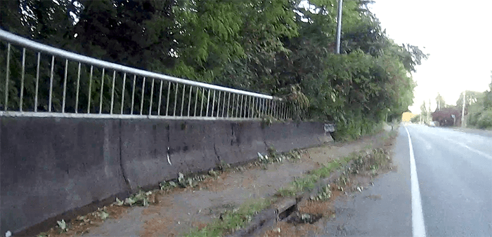 We then continued to the end of Juanita-Woodinville Way, then came back on the other side of the street. When we reached the bridge, we saw that a small tree had fallen near the location where we were collecting the cans twenty minutes earlier.