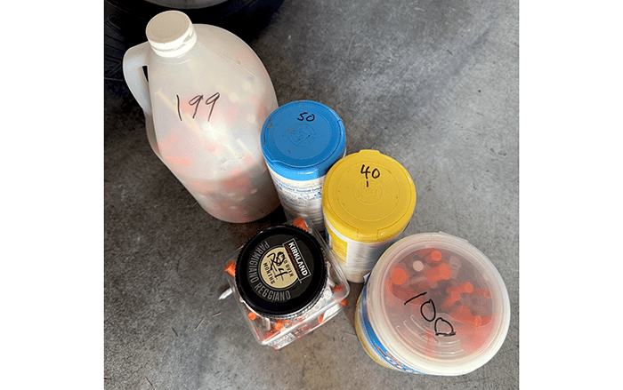 Following up on last week’s needle find, we guessed at a couple-hundred needles. Over the last week, we collected plastic containers and filled them with needles, wearing heavy gloves, of course.