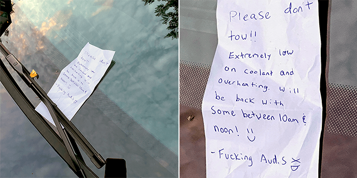 In the Bothell parking lot, someone left their car overnight and left a note on the windshield.