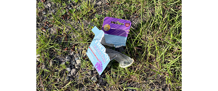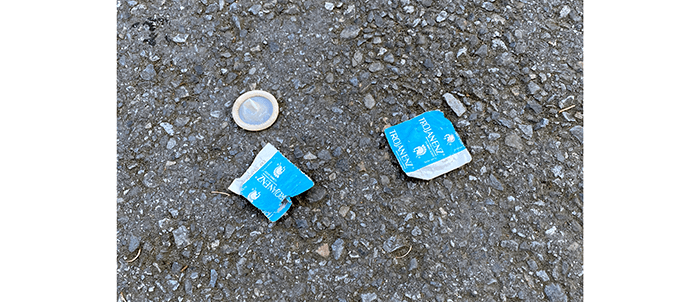 One used and two unopened. We’d like to know the story here. We assume these are newer than the ones we found yesterday. If so, these have an expiration date of 2028 which implies that the expiration date is about five years. That means the guy yesterday purchased the condoms around 2004, twenty years ago. You have to appreciate his patience.