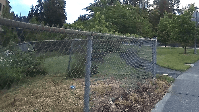 Then, they mowed the area and left all the trash visible. We decided to go around the fence and clean up the area.
