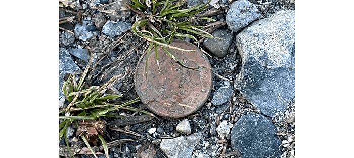 A shiny quarter at the park-and-ride. We thought we had found more money.