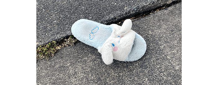 On the sidewalk on Brickyard Road, we picked up a single slipper.