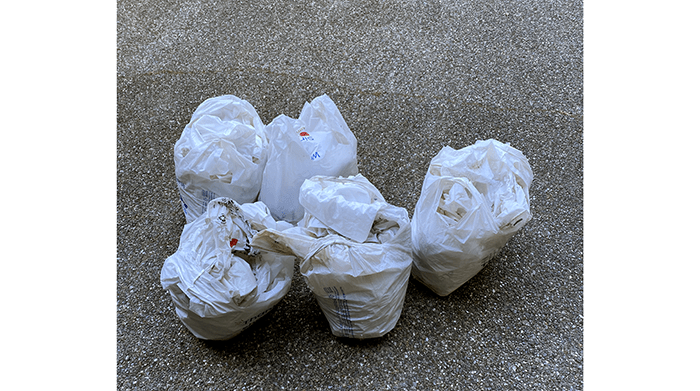 <RANT> When we first started our walks, we used bags we received for shopping at grocery stores and bags we picked up to collect trash. These were mostly economically thin and didn’t last long, either for carrying trash or for surviving on the streets. We even asked our friends to save bags for us to use because we were running out.