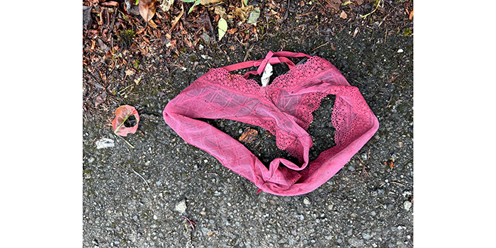 In the driveway out of Safeway, we found a pair of women’s underwear.