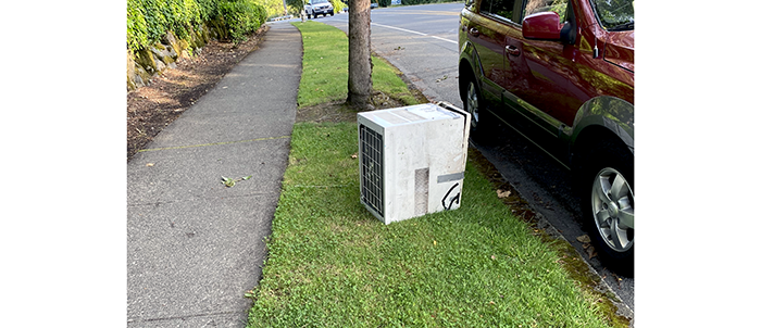 Great. Just after the old sofas were removed from the front of the apartments on Woodinville Drive, someone dumped an old air conditioner.